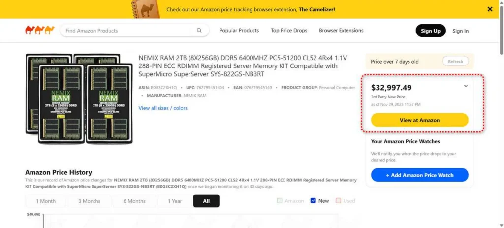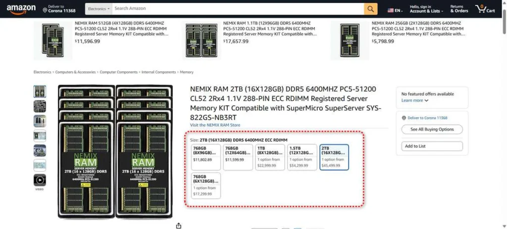 This big price not only from one company. On Amazon, many memory kits also selling very costly. A single 64GB memory stick start from about $99. A 2TB kit with big memory sticks cost around $38,999. Another 2TB kit with different setup cost about $45,999. So bigger memory means much bigger price.
