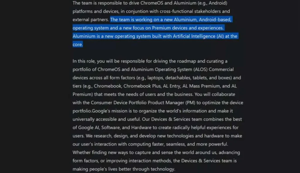 A job post from Google gave this information. The job was in Google’s Taiwan office. In the job details, Google clearly said the person will help manage the change from ChromeOS to Aluminium. This shows the plan is real and already started.