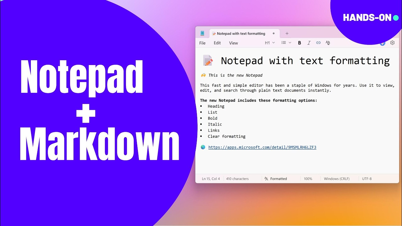 The update for Notepad (version 11.2512.10.0) focuses on making it a better tool for editing Markdown and improving its AI features. Now, it supports more Markdown options, including strikethrough and nested lists. You can use these options through the toolbar, shortcuts, or by editing the text directly.